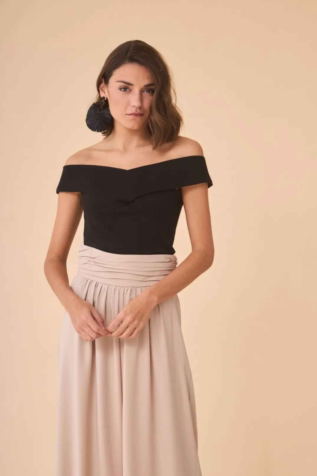 Top confeccionado en punto de color negro. Tirante ancho palabra de honor.El fondo de armario perfecto para todos los ev…