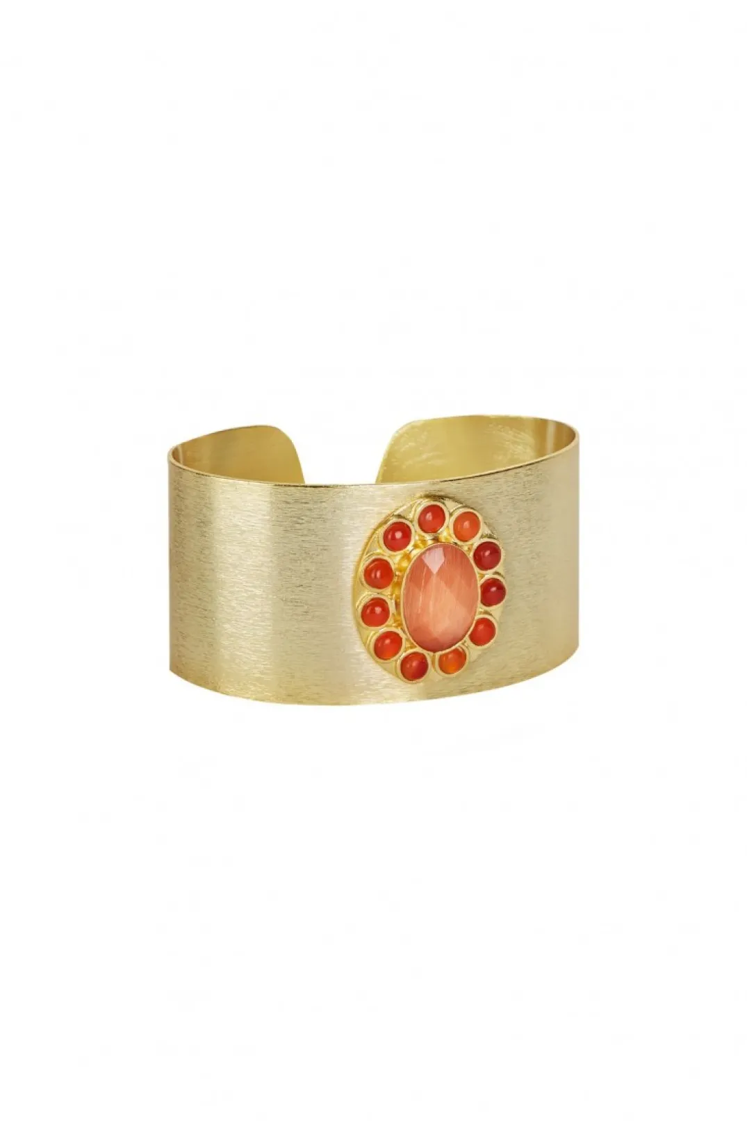 Brazalete bisuteria dorado con piedras en color naranja.
