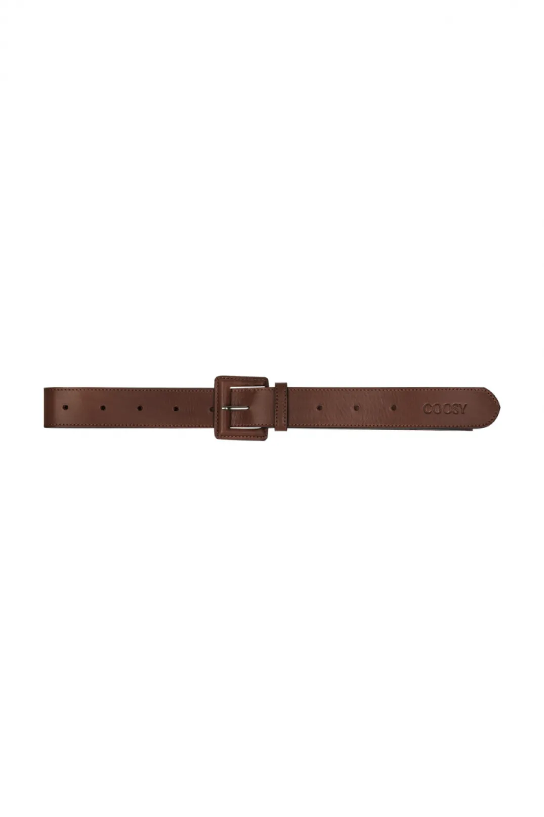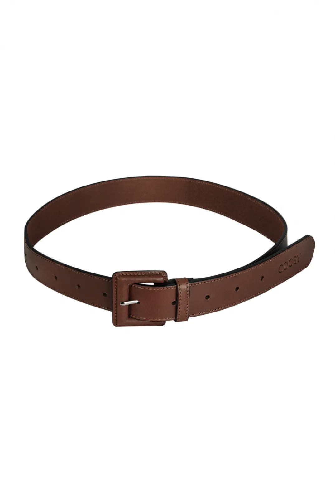 Cinturón confeccionado en piel color chocolate. Cierre delantero con hebilla forrada en piel. Incluye el logo de Coosy…