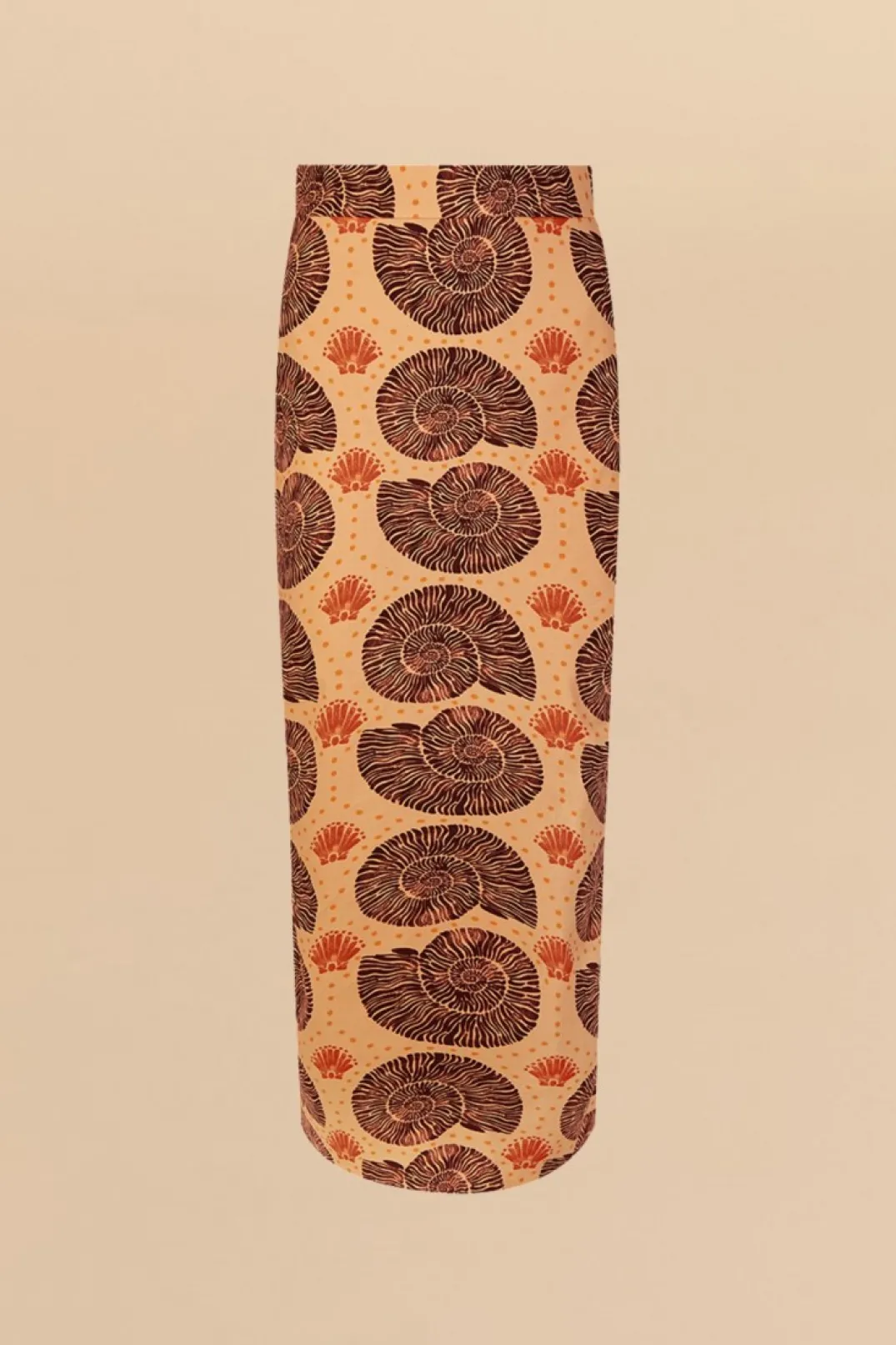 Falda midi de tubo confeccionada tejido de algodón estampado. Cinturilla alta y corte entallado. Abertura trasera y cierre con cremallera invisible lateral.