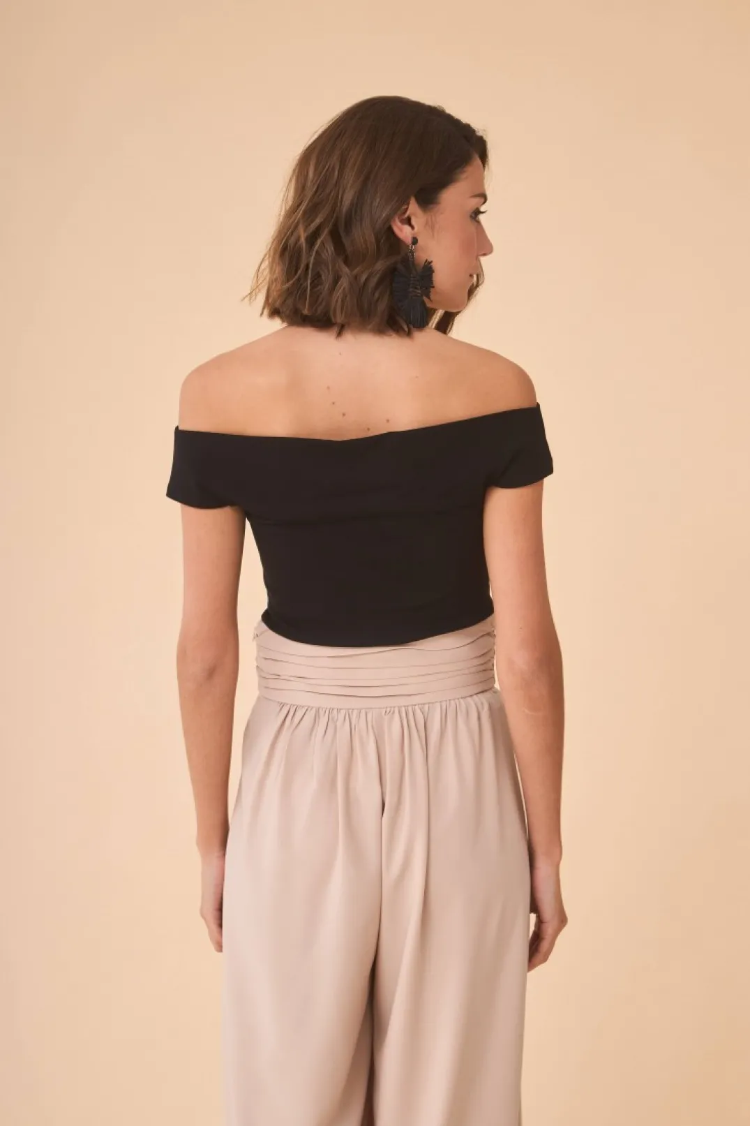 Top confeccionado en punto de color negro. Tirante ancho palabra de honor.El fondo de armario perfecto para todos los ev…